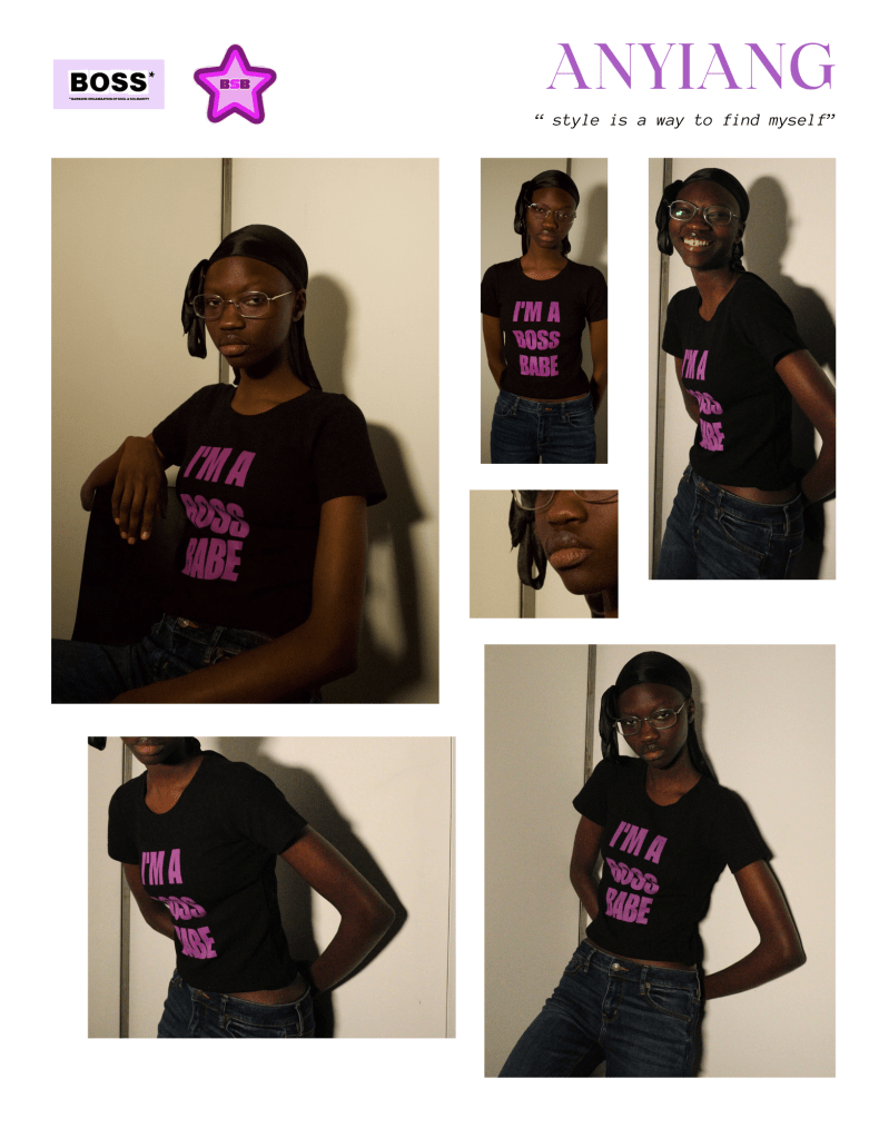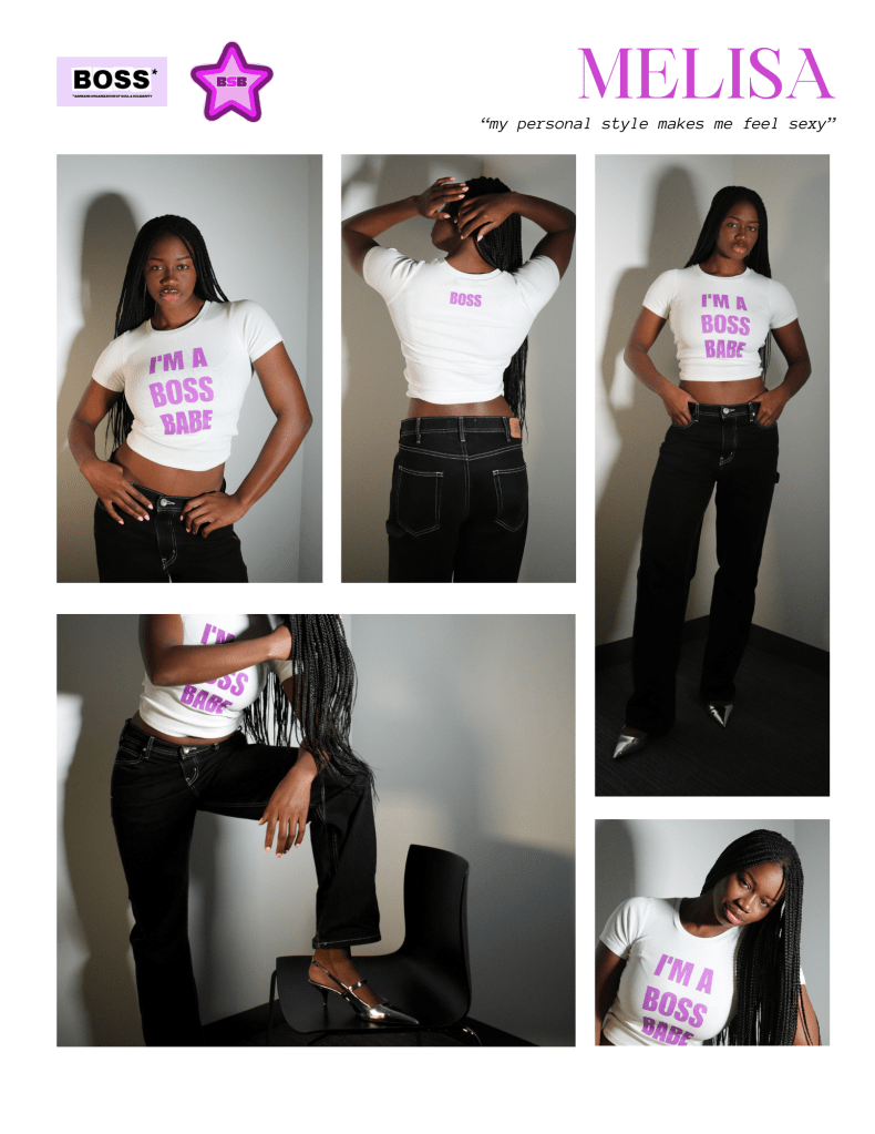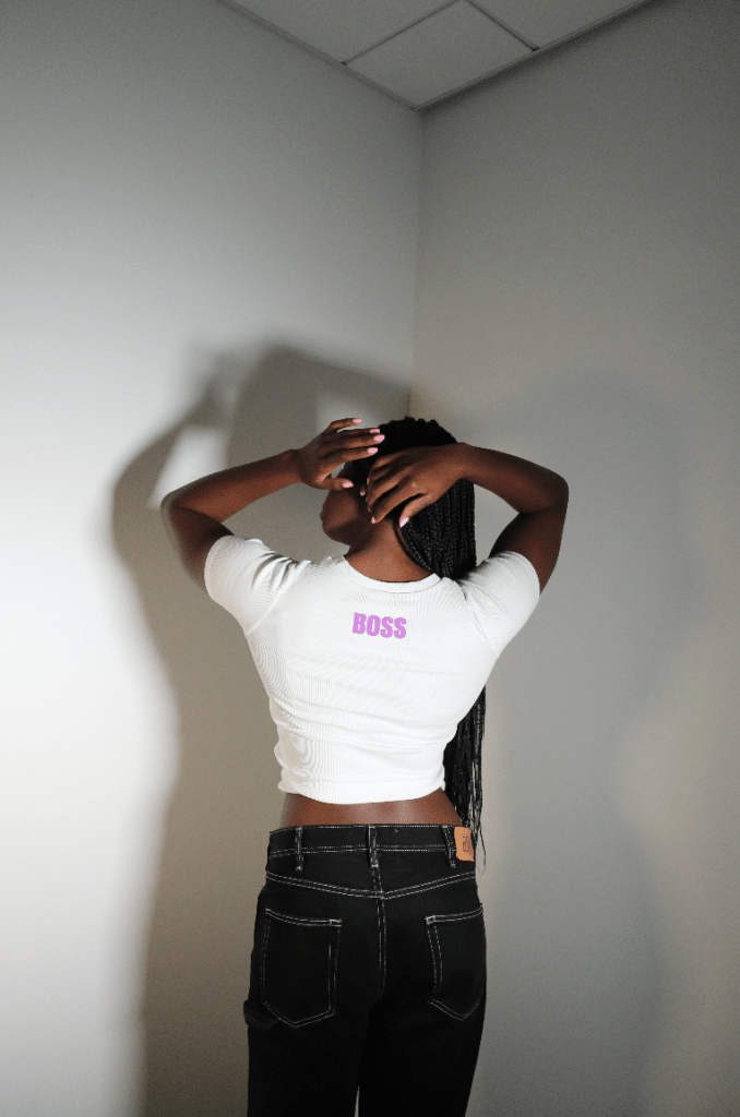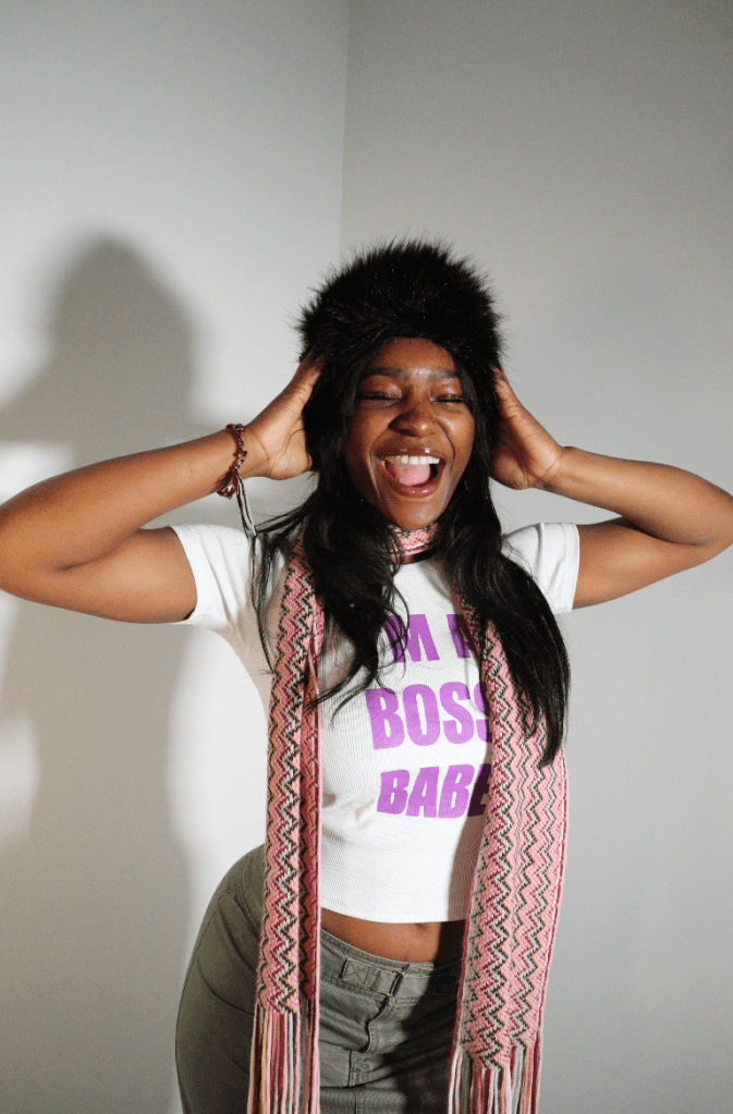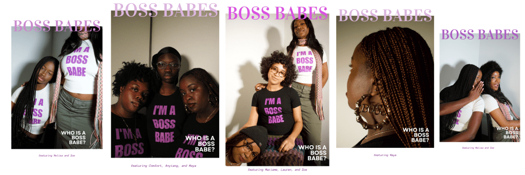 I designed the “I’M A B.O.S.S. BABE” baby tees in my sophomore year as a part of our B.O.S.S. merch collection. I wanted to create something cute and fresh—that could be easily styled in countless ways no matter whose closet it was in. I sat on the shirts for a bit, knowing that I wanted to conceptualize a photoshoot to commemorate its release.